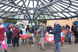 Im Anschluss an den Karnevalsumzug 2023 haben sich die Schüler, Lehrer, Freund und Verwandte auf dem Schulhof eingefunden und der Förderverein hat für den Ausschank von Wasser, Kaffee und Limonaden gesorgt sowie den Hunger durch Würstchen im Brötchen gestillt.