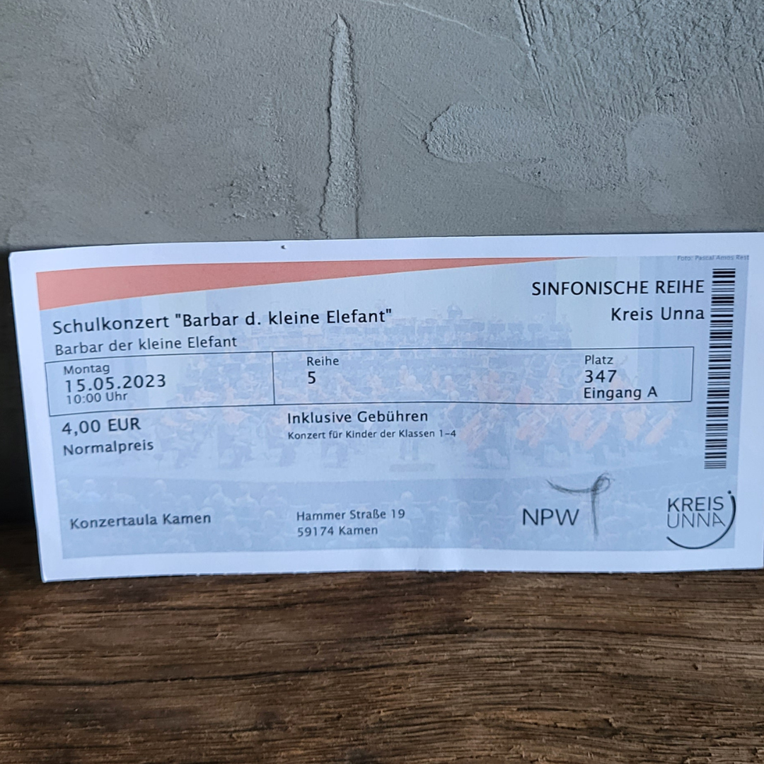 Am 15.05.2023 ging es für die Insgesamt 158 Kinder der 1. und 2. Klasse in die Konzertaula in Kamen. Gemeinsam wurde dort das Stück "Babar der kleine Elefant" besucht. Für alle Kinder ein schönes musikalisches Erlebnis und willkommene Abwechslung zum Schulalltag.