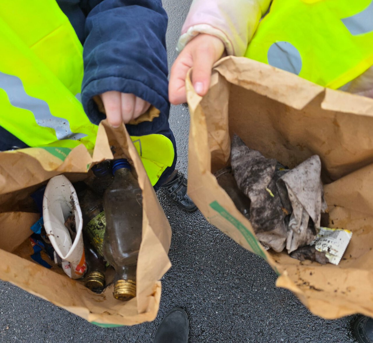 Am Montag sammelten wir gemeinsam mit Frau Eickelpasch von der Verbraucherberatung Müll auf dem Parkplatz vor unserer Schule. Wir waren überrascht, dass wir innerhalb kürzester Zeit 2 Mülltüten füllen konnten. Wir fanden einen Einkaufswagen, Holz, Metallstangen, ganz viel Plastik, Flaschen, u.v.m.