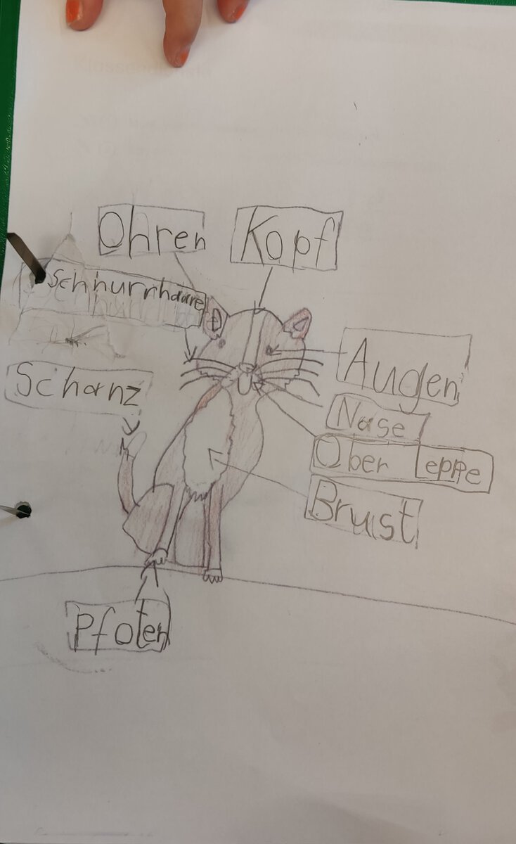 Als wir unsere Ergebnisse vorgestellt haben und Fiete sich im Klassenraum breit gemacht hat, wurde es für ihn langsam Zeit, wieder zu gehen. Nachdem Fiete nach Hause gebracht wurde, konnten wir noch ein Arbeitsblatt bearbeiten, das die Körperteil-Gruppe selbst gemacht hat. Danach wurde noch ein Spielzeug gebastelt und unser Katzentag war um. Wir sind gespannt, was wir im Dezember planen.