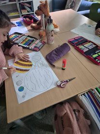Wir Kinder der 2a lernten unser Sonnensystem kennen. Wir lernten die Besonderheiten der 8 Planete kennen, bastelten ein Bild zu unserem Sonnensystem, schrieben über unsere eigenen ausgedachten Planeten und brachten den Sternenhimmel ins Klassenzimmer