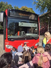 Die Busschule war zu Besuch und wir lernten alles darüber, wie wir uns richtig an der Bushaltestelle und im Bus verhalten. Von einer zerquetschten Kartoffel unterm Reifen bis hin zu einer Testvollbremsung war alles dabei. Wir sind jetzt Bus-Profis 👍